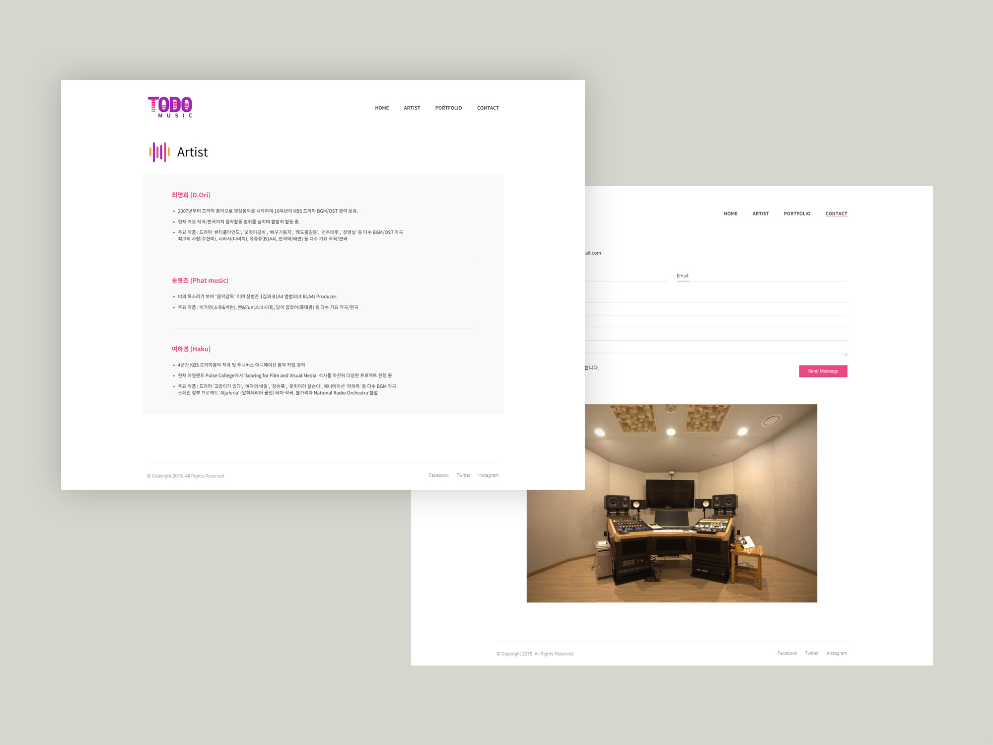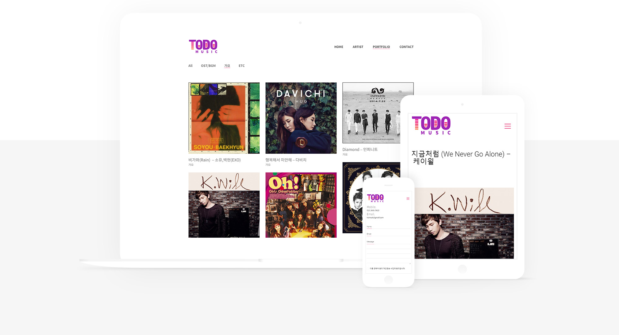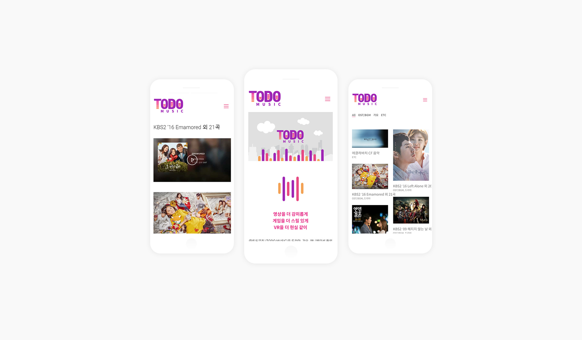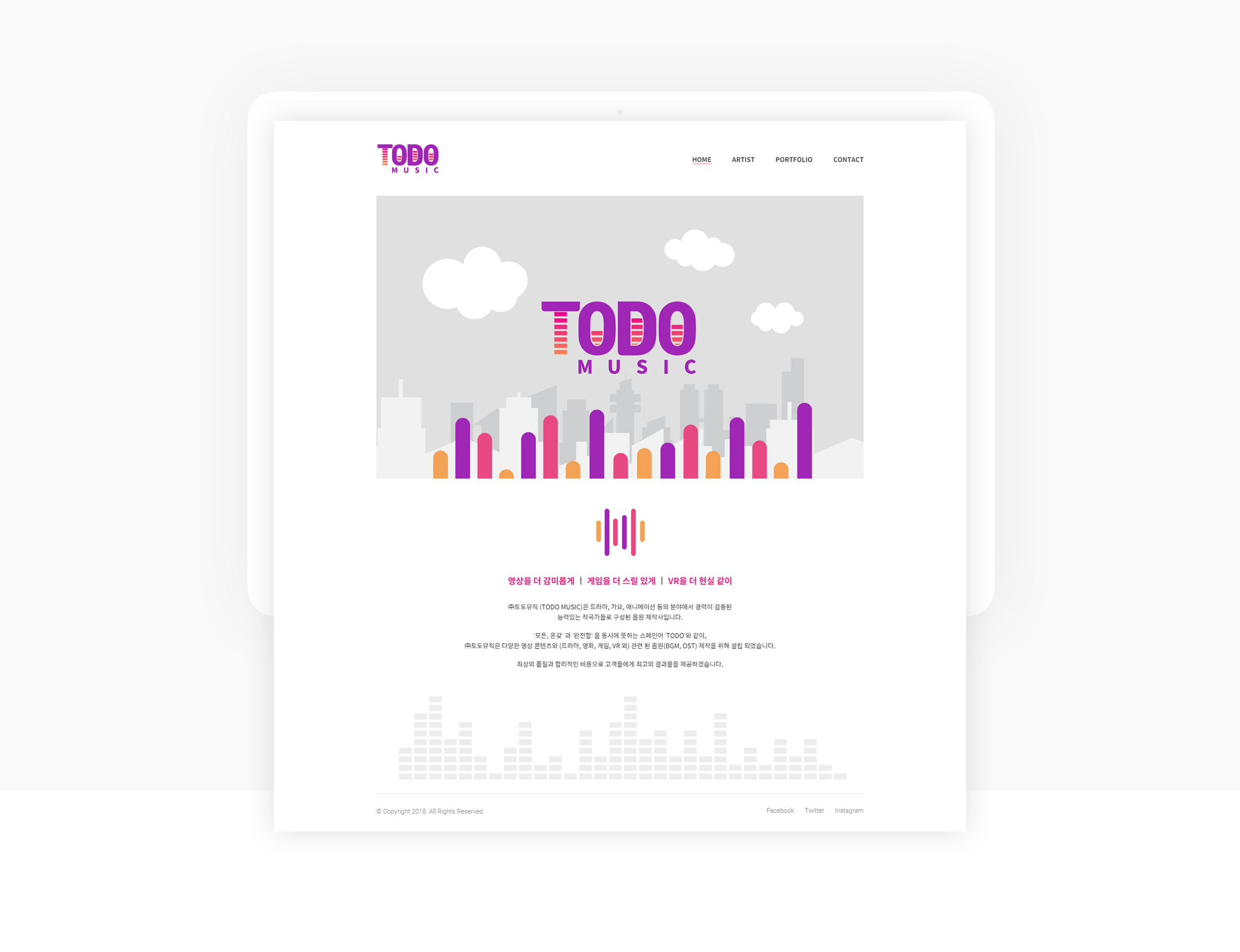 드라마, 가요, 애니메이션 분야의 음원을 제작하고 있는 토도뮤직의 홈페이지를 구축했습니다. 클라이언트가 요청한 보다 심플하고 토도뮤직의 컬러감이 돋보이도록 포트폴리오를 구축하였고, 쉽게 사용할 수 있는 UI와 다채로운 카테고리 구성이 돋보이는 포트폴리오 홈페이지 입니다.